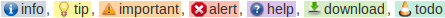 С иконками: info, tip, important, alert, help, download, todo